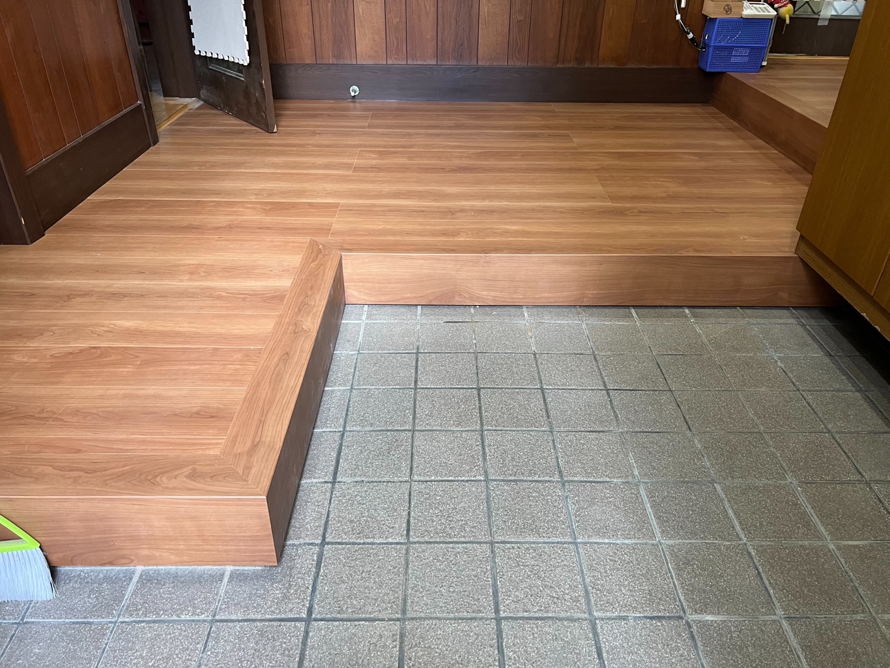 床の損傷がひどかった為今回リフォームに踏み切られ、玄関、廊下、和室を工事させていただきました。